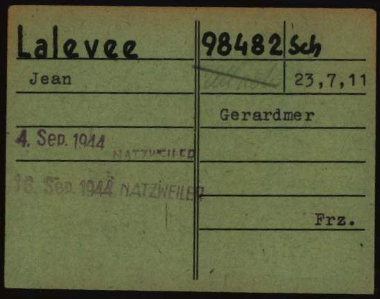 Les Allemands interrogent ensuite ceux qu’ils pensent être les chefs. Parmi eux figure Jean Lalevée. Patron d’une taillanderie réputée située à la Basse-des-Rupt, Jean intègre la Résistance dès le mois de mai 1943 aux côtés d’Herlory. Il fédère autour de lui ses ouvriers, qui intègrent progressivement l’Armée secrète. Lorsqu’il est arrêté le 1er juillet 1944, Jean Lalevée connaît beaucoup de choses : il a participé aux repérages des terrains de parachutage qui auront lieu à la Piquante-Pierre à la fin de l’été et, surtout, il connaît les principaux chefs vosgiens et gérômois. Les Allemands se doutent de son importance et le traitement qu’il reçoit au cours des interrogatoires est terrible. Marcel Pierré, l’un de ses ouvriers, arrêté comme lui le 1er juillet 1944, témoigne : « Mon patron a été interrogé par les Allemands […]. Lorsqu’il est revenu dans la chambre après l’interrogatoire, mon patron, qui avait été frappé et qui portait de nombreuses traces de coups, a eu une syncope et n’a pu nous dire sur quoi avait porté l’interrogatoire. »